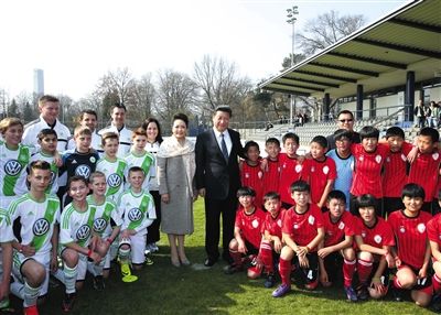 2014習(xí)近平訪德時,看望在德國訓(xùn)練的中國少年足球運(yùn)動員