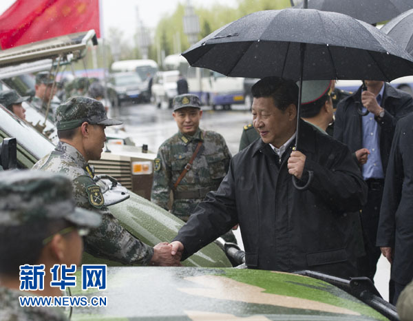 在新疆生產(chǎn)建設(shè)兵團(tuán)第六師師部,民兵應(yīng)急營隊(duì)列整整齊齊,總書記冒雨檢閱了他們,并察看了武器裝備,鼓勵(lì)民兵指戰(zhàn)員提高綜合素質(zhì)和訓(xùn)練水平,更好履行擔(dān)負(fù)的特殊使命。