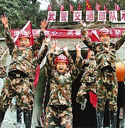 圖為4月10日,武警交通部隊(duì)官兵慶祝獨(dú)龍江公路隧道貫通。 攝影:陳鴻圣 人民視覺(jué)