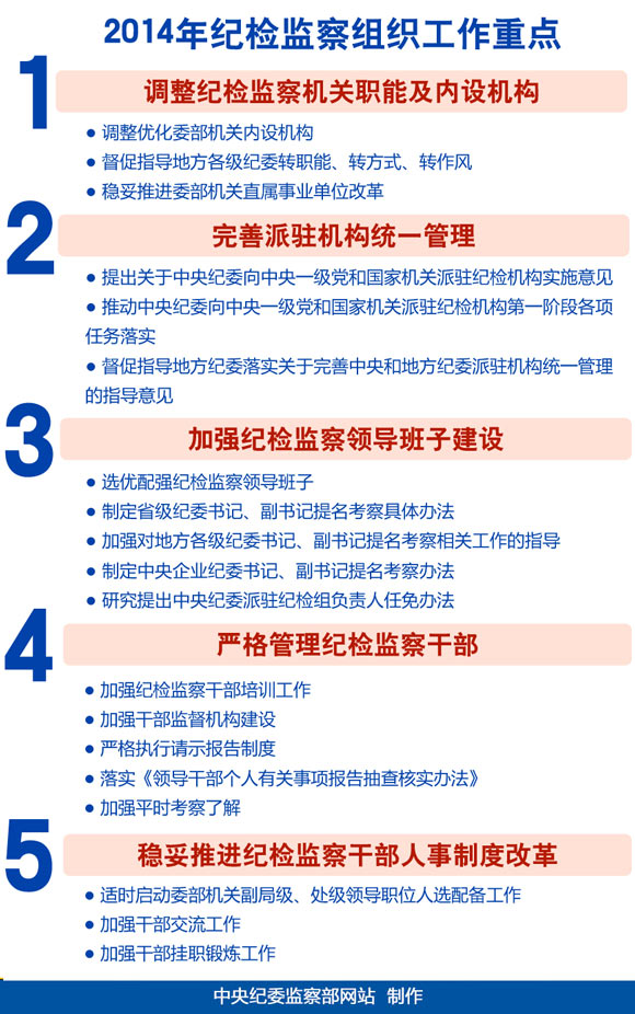 人民網(wǎng)北京3月31日電中央紀(jì)委監(jiān)察部網(wǎng)站今日推出“走進(jìn)中央紀(jì)委監(jiān)察部”系列報(bào)道之八:2014年紀(jì)檢監(jiān)察組織工作。文章介紹了2014年中央紀(jì)委在加強(qiáng)紀(jì)檢監(jiān)察組織工作方面的五項(xiàng)重點(diǎn)工作。