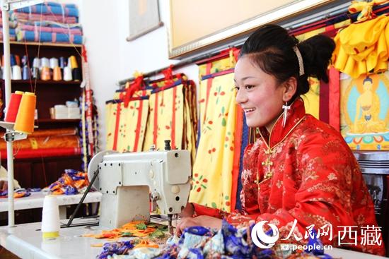 26日,一名員工正在吞米嶺·藏藝文博園基地的車(chē)間內(nèi)縫制香包。當(dāng)日,由西藏崗地文化產(chǎn)業(yè)集團(tuán)有限公司投資的西藏首個(gè)國(guó)家文化產(chǎn)業(yè)示范基地——吞米嶺·藏藝文博園一期工程在拉薩市達(dá)孜工業(yè)園區(qū)正式開(kāi)建。記者 扎西 攝