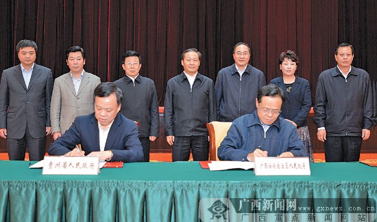3月23日上午,廣西·貴州經(jīng)濟社會發(fā)展座談會在南寧舉行。自治區(qū)黨委書記、自治區(qū)人大常委會主任彭清華與貴州省委書記、省人大常委會主任趙克志共同出席并講話。自治區(qū)主席陳武、貴州省省長陳敏爾分別介紹兩省區(qū)經(jīng)濟社會發(fā)展情況,并簽署了關(guān)于進一步深化合作的會議紀要。