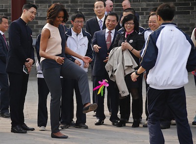 應(yīng)國(guó)家主席習(xí)近平夫人彭麗媛邀請(qǐng),美國(guó)總統(tǒng)奧巴馬夫人米歇爾·奧巴馬以及米歇爾的母親和兩個(gè)女兒昨日從北京抵達(dá)西安參觀了兵馬俑,在短短的一個(gè)多小時(shí)里,米歇爾一行領(lǐng)略2000多年前威武浩蕩的秦俑軍陣,與中國(guó)歷史文化“零距離”接觸。隨后,她們游覽了西安城墻。