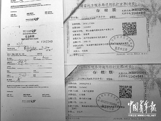西海岸溫泉度假酒店位于海南省澄邁縣。在澄邁縣地方稅務(wù)局第二稅務(wù)分局,工作人員根據(jù)發(fā)票上的發(fā)票代碼和發(fā)票號(hào)碼,向中國(guó)青年報(bào)記者確認(rèn),兩張發(fā)票是真的。