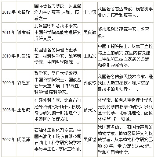 歷屆國家科技最高獎(jiǎng)獲獎(jiǎng)名單: