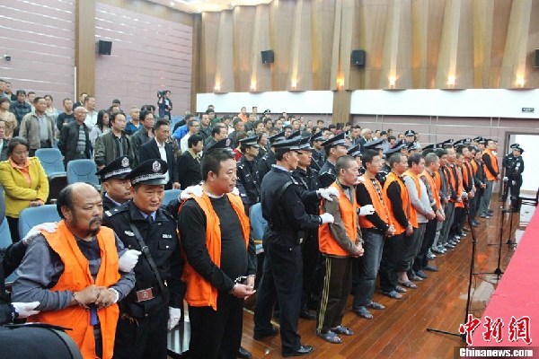10月9日上午,涉案金額達(dá)6000萬元,涉及117家大中型食用油、食品加工企業(yè)以及個人糧油店的特大地溝油案在江蘇省連云港市中級人民法院一審判決。被告人王成奎犯生產(chǎn)、銷售有毒、有害食品罪,判處無期徒刑,剝奪政治權(quán)利終身,并處沒收個人全部財產(chǎn)。其余被告人各自獲刑。該起案件是《中國食品安全法》頒布4年來,中國范圍內(nèi)涉及案值較大的一起地溝油案。圖為法庭現(xiàn)場。