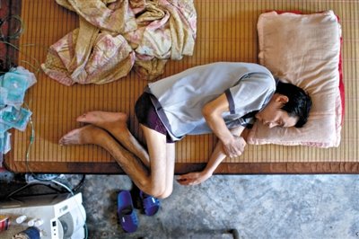 2011年冬天,曹斌到深圳,接弟弟回家過(guò)年。曹滿云瘦得不到70斤,不斷咳嗽,臉漲得通紅。
