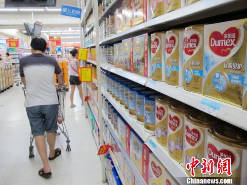 8月4日,北京一大型超市內(nèi),一名市民從嬰幼兒奶粉貨架前經(jīng)過。新西蘭乳制品巨頭恒天然集團(tuán)2日向新西蘭政府通報(bào)稱,其生產(chǎn)的3個(gè)批次濃縮乳清蛋白(WPC80)中檢出肉毒桿菌,影響包括3個(gè)中國企業(yè)在內(nèi)的8家客戶。