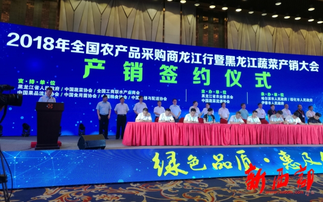 為深入貫徹落實習總書記關于“推動黑龍江由大糧倉變成綠色糧倉、綠色菜園、綠色廚房”的重要指示,推進質量興農、綠色興農、品牌強農,充分展示龍江農業(yè)優(yōu)勢與特色,宣傳推介龍江綠色農產品品牌,搭建優(yōu)質農產品產銷交流平臺,7月19日至22日,由黑龍江省人民政府、中國蔬菜協(xié)會、全國工商聯水產業(yè)商會、中國果品流通協(xié)會、中國食用菌協(xié)會、中國糧食協(xié)會、中國倉儲與配送協(xié)會共同支持,黑龍江省農業(yè)委員會和中國蔬菜流通協(xié)會聯合主辦,哈爾濱市人民政府、綏化市人民政府、伊春市人民政府共同承辦的“2018年全國農產品采購商龍江行暨中國?黑龍江蔬菜產銷大會”在哈爾濱成功舉辦。