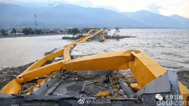 另一段視頻則呈現(xiàn)了帕盧標志性的跨海大橋被沖垮,斷成數(shù)段橫在海中央。