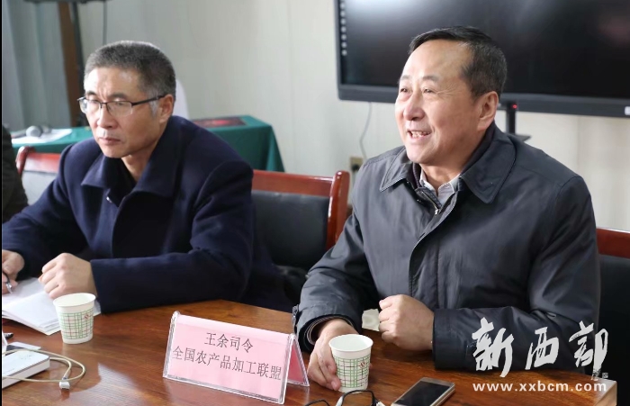西安警備區(qū)原副司令員、全國農(nóng)產(chǎn)品加工產(chǎn)業(yè)發(fā)展聯(lián)盟理事、陜西工作委員會會秘書長王余(右)講話