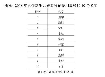 2018年進(jìn)行戶籍登記的男性新生兒姓名,使用頻率最高的10個(gè)名字由高到低依次為:“浩宇”“浩然”“宇軒”“宇航”“宇澤”“梓豪”“子軒”“浩軒”“宇辰”“子豪”。