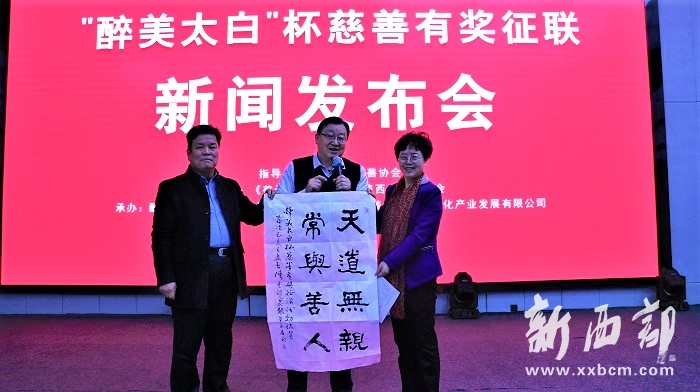 由陜西省慈善協(xié)會(huì)指導(dǎo),《善天下》雜志社、陜西省楹聯(lián)學(xué)會(huì)主辦,陜西醉美太白山水文化產(chǎn)業(yè)發(fā)展有限公司承辦的“醉美太白”杯慈善有獎(jiǎng)?wù)髀?lián)活動(dòng)2019年2月28日在眉縣啟動(dòng)。