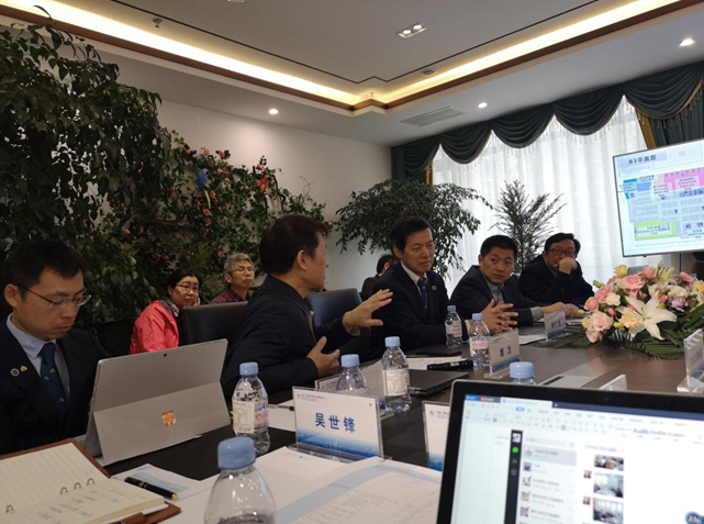 (與會人員在“生命源”健康站遠(yuǎn)程醫(yī)療室與美國專家連線)