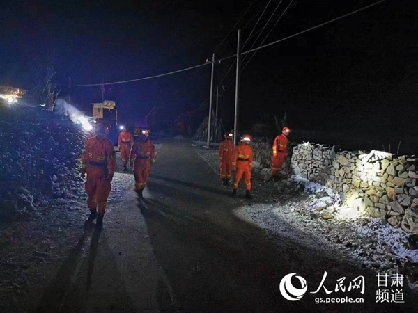 甘肅省森林消防總隊(duì)先遣分隊(duì)已到達(dá)震中并展開(kāi)勘察、救援。(甘肅省森林消防總隊(duì)供圖)