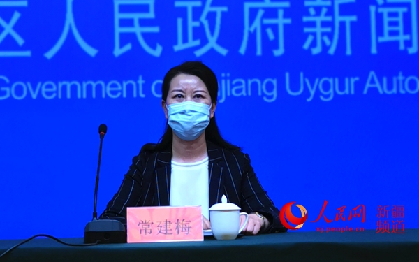 發(fā)布會(huì)上,烏魯木齊市衛(wèi)健委副主任常建梅介紹情況。馬亮 攝