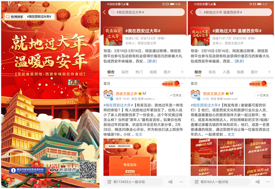 與此同時(shí),臘月二十九至正月十六,@西安文旅之聲 聯(lián)合@新浪陜西 @陜西旅游 持續(xù)開展10余輪微博有獎(jiǎng)轉(zhuǎn)發(fā)活動(dòng),累計(jì)送出近200份新年溫暖互動(dòng)禮,讓年味十足的新春大禮包,陪伴網(wǎng)友度過一個(gè)喜慶歡樂、紅火熱鬧、平安祥和的新春佳節(jié)。