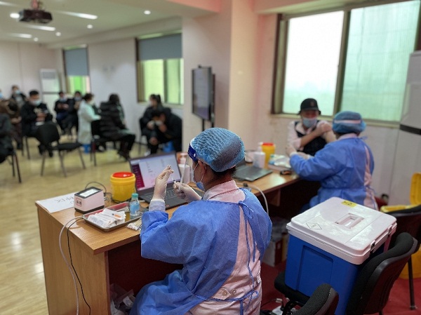陜西西安,一名老人正在接種新冠病毒疫苗。