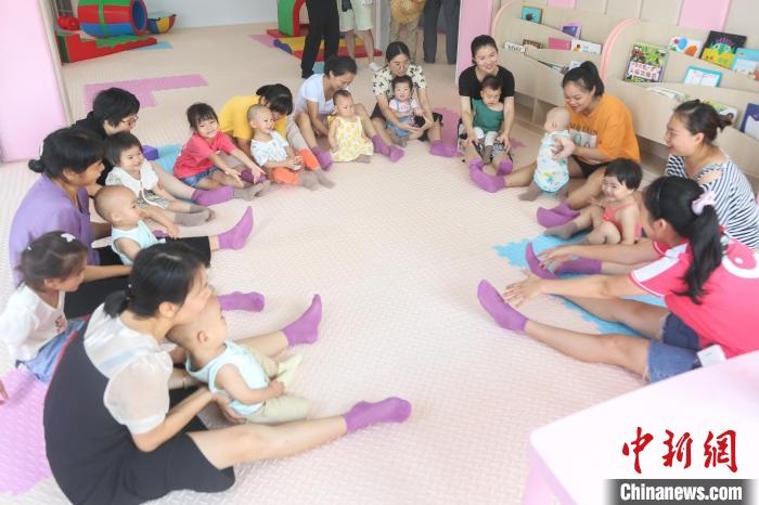 資料圖:一家嬰幼兒照護服務(wù)指導(dǎo)中心內(nèi),工作人員指導(dǎo)家長和幼兒互動做游戲。劉力鑫 攝