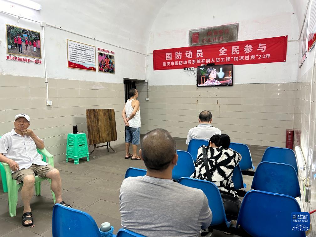 “這里有桌椅、電視、茶水,外面快40攝氏度,這里都不到25攝氏度。”年近八旬的重慶沙坪壩區(qū)居民陸大爺,自打今年暑期高溫以來,天天帶著自己的蒲扇和茶水杯,到家附近的光榮坡11號(hào)人防工程納涼點(diǎn)避暑,和街坊鄰居聊天,一坐就是一下午。