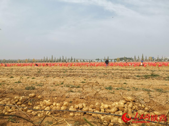 10月16日,在榆林一種植基地,農(nóng)民們正在收馬鈴薯。人民網(wǎng) 王麗攝