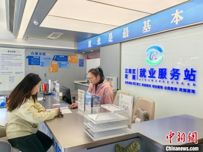 12月20日,在南寧市江南區(qū)商圈就業(yè)服務(wù)站,工作人員正在為求職者提供服務(wù)。唐志強(qiáng)攝