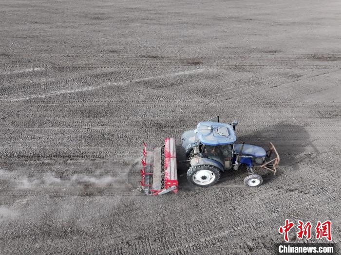 2月13日開(kāi)始,新疆巴州29萬(wàn)畝春小麥開(kāi)播。確·胡熱攝