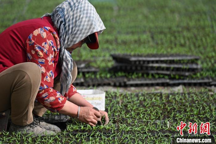 2月18日,新疆焉耆回族自治縣農(nóng)民在大棚育苗。確·胡熱攝