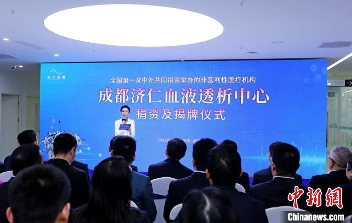 中新網(wǎng)成都3月18日電(堯欣雨)18日,成都濟(jì)仁血液透析中心捐資及揭牌儀式順利舉行,標(biāo)志著成都市開創(chuàng)性建成全國首家以中外共同捐資方式舉辦的非營利性醫(yī)療機(jī)構(gòu)。