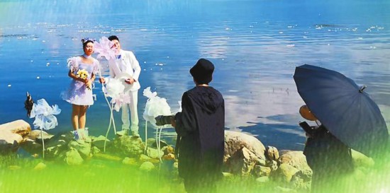 洱海邊的婚紗旅拍。 本報(bào)記者 秦蒙琳 攝
