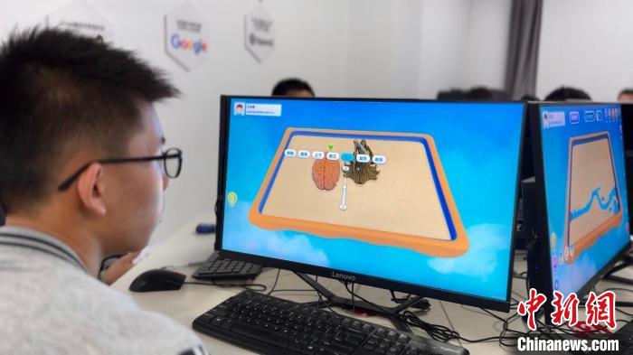 2025年4月24日,學(xué)生正在體驗(yàn)人工智能心理健康態(tài)勢(shì)感知系統(tǒng)中的沙盤(pán)游戲。王牧雨 攝