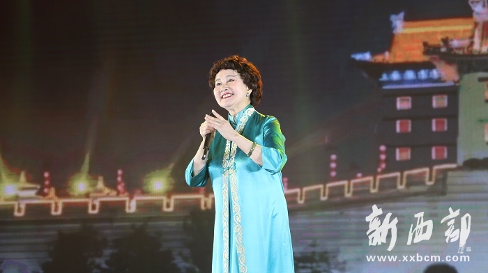 ▲著名藝術(shù)家馮健雪、任勇帶領(lǐng)全體演員齊唱《我和我的祖國》,圖為馮建雪。 新西部網(wǎng) 王順利攝影