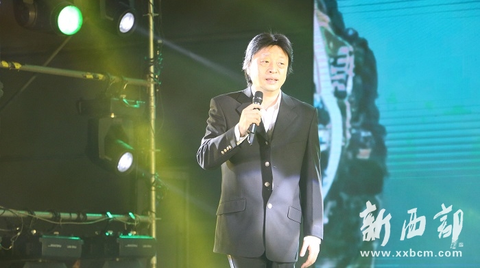 ▲著名藝術(shù)家馮健雪、任勇帶領(lǐng)全體演員齊唱《我和我的祖國》,圖為任勇。 新西部網(wǎng) 王順利攝影