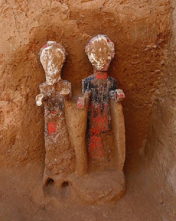 當(dāng)沿著東1區(qū)的兩座“中”字形(M1和M2)大墓深長(zhǎng)的墓道而下時(shí),超過(guò)12米深的墓室令人印象深刻?!皟勺竽剐沃平Y(jié)構(gòu)基本相同,總長(zhǎng)、深度相當(dāng),墓道深長(zhǎng),槨室大小相若,均南北長(zhǎng)7米,東西寬5米?!狈N建榮說(shuō),兩墓均遭盜擾,出土隨葬品多寡有別。