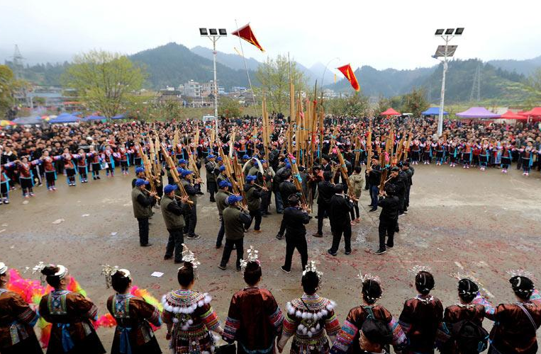 人民網(wǎng)融水3月10日電 3月8日,廣西融水苗族自治縣洞頭鄉(xiāng)迎來一年一度的特色節(jié)慶“二月二”花炮節(jié)。該節(jié)是當(dāng)?shù)刈钍⒋蟮膫鹘y(tǒng)節(jié)日,來自桂黔兩省交界附近村屯2萬多名群眾和游客一起舉行慶?;顒?。搶花炮、侗族千人多耶舞、蘆笙踩堂舞、打同年、舞獅等系列特色民俗活動精彩紛呈。