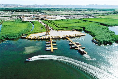 新疆博湖縣博斯騰湖蓮海世界景區(qū),游客乘坐快艇暢游博斯騰湖。近年來,該縣把文化旅游作為縣域支柱性產(chǎn)業(yè),依托博斯騰湖區(qū)位優(yōu)勢和資源稟賦,實施全域旅游戰(zhàn)略。年磊 攝