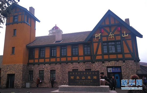 游客在全國(guó)重點(diǎn)文物保護(hù)單位阿爾山車(chē)站參觀(guān)(4月17日攝)。 新華社記者 李云平 攝