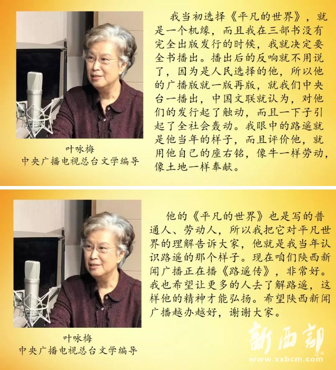 2017年,作家張艷茜女士歷時(shí)八年完成了傳記文學(xué)《路遙傳》,為了向經(jīng)典致敬,陜西新聞廣播集結(jié)了最專業(yè)的制作團(tuán)隊(duì),歷時(shí)兩年打造了廣播長篇連播《路遙傳》。作為路遙先生《平凡的世界》當(dāng)年的廣播編輯葉永梅女士,聞?dòng)嵰矊3虖谋本┌l(fā)來了祝賀。