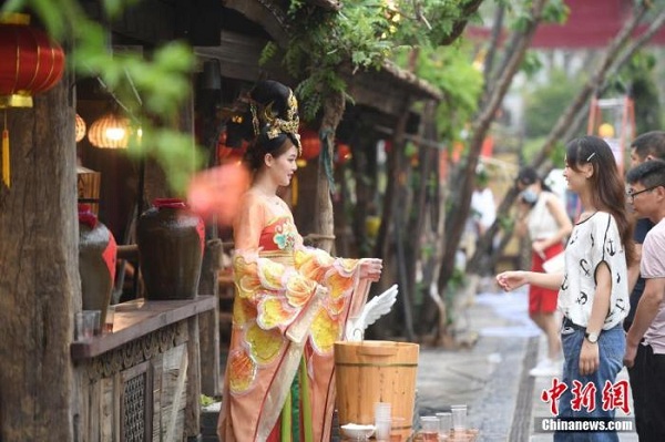 資料圖:游客游覽西安宋城演藝王國景區(qū)。楊晨 攝