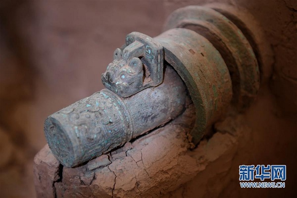 這是7月30日在陜西省考古研究院涇渭基地拍攝的西周晚期青銅輪牙馬車車轄。新華社記者 李一博 攝