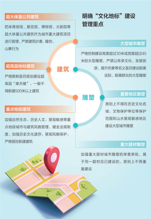 當(dāng)前,隨著城市發(fā)展,建設(shè)“文化地標(biāo)”成為城市構(gòu)筑文化空間、樹立城市形象的選擇。專家和讀者建議,為杜絕濫建“文化地標(biāo)”,一方面,要引導(dǎo)樹立正確政績(jī)觀,建立制度規(guī)范、健全約束機(jī)制;另一方面,要落實(shí)地方政府責(zé)任,強(qiáng)化審批監(jiān)管、明確建設(shè)管理重點(diǎn)領(lǐng)域。同時(shí),堅(jiān)持以人民為中心,讓城市“文化地標(biāo)”更有文化。