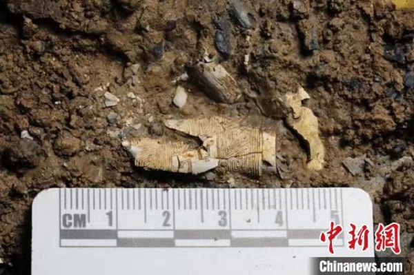 5號(hào)祭祀坑象牙雕刻殘片。四川省文物考古研究院供圖
