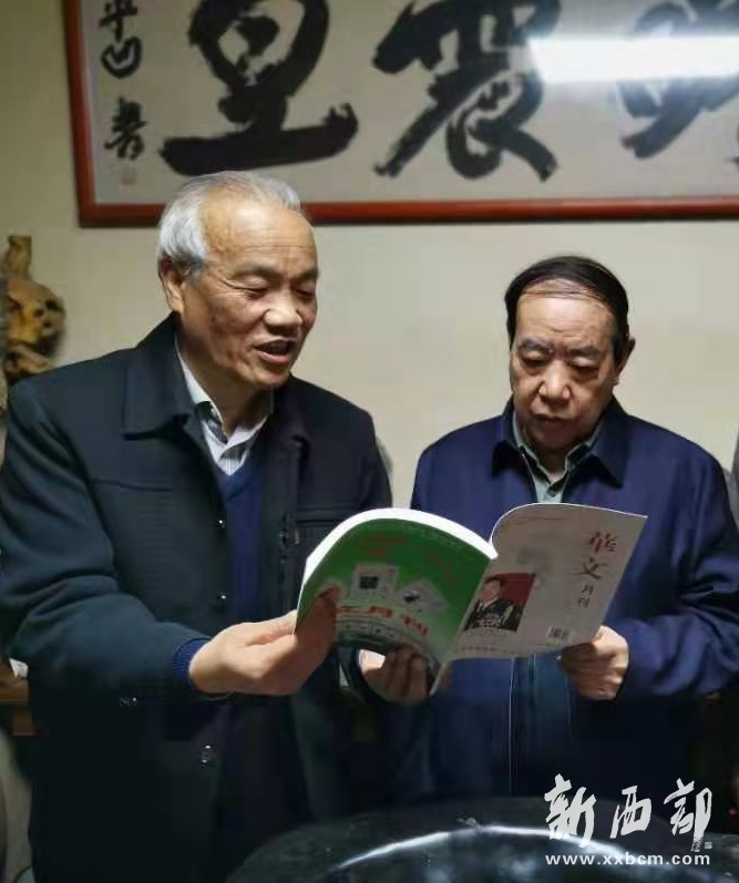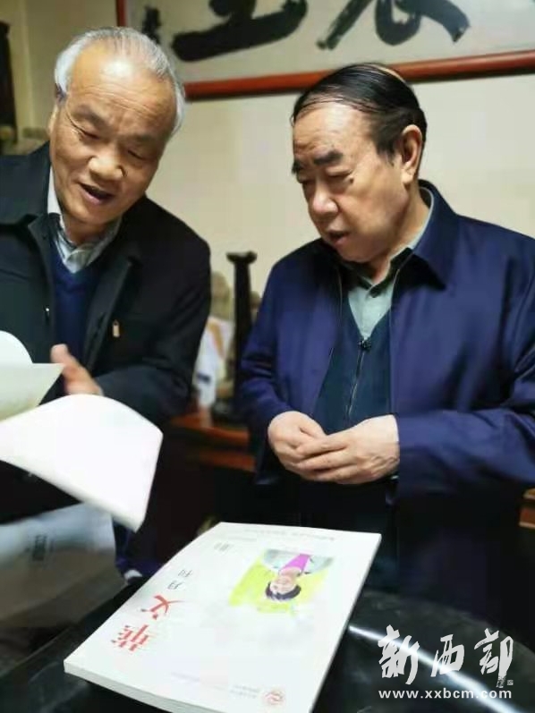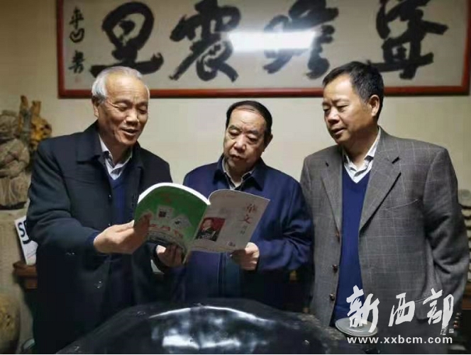▲中國(guó)作家協(xié)會(huì)副主席、陜西省作家協(xié)會(huì)主席、茅盾文學(xué)獎(jiǎng)獲得者賈平凹(中),3月20日垂覽2021年第3期《華文月刊》雜志。右一為軍旅作家、第八屆冰心散文獎(jiǎng)獲得者尹武平,左一為《華文月刊》雜志常務(wù)副主編李印功。