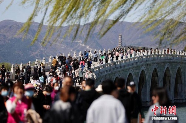 資料圖:4月3日,北京天氣晴好,市民在北京頤和園游覽,踏青賞花。 中新社記者 盛佳鵬 攝