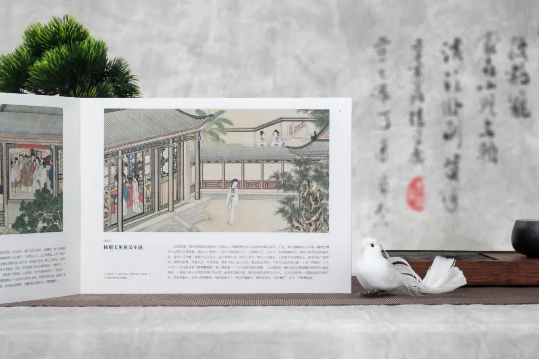 這次由旅順博物館官方授權(quán),特聘中國(guó)紅學(xué)權(quán)威專家,為每幅畫面撰寫文字。以大觀園全景為開篇,從第二幅畫開始,原著120回章節(jié)故事,盡數(shù)收入其中。