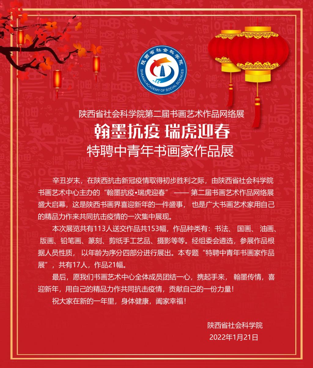 本次展覽由于疫情的原因,以網(wǎng)絡(luò)展出的形式呈現(xiàn)。參展作者陣容強(qiáng)大,涵蓋了我省老中青三代書畫藝術(shù)家,展出的書畫作品形式多樣,形制豐富,設(shè)計考究,亮點突出,特色鮮明。既可以看出大家積極參展的姿態(tài)和喜迎新春的心情。也可以看出院書畫藝術(shù)中心在展覽前期準(zhǔn)備充分,組織嚴(yán)密,更可以看出本次展覽得到了廣大書畫家積極響應(yīng),效果好,檔次高,是我省書畫界的一次集中亮相。