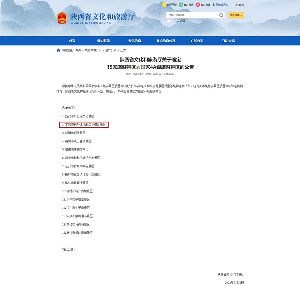 日前,陜西省文化和旅游廳發(fā)布公告,我區(qū)長(zhǎng)樂(lè)塬抗戰(zhàn)工業(yè)遺址景區(qū)被確定為國(guó)家4A級(jí)旅游景區(qū)。這次全省共有15個(gè)景區(qū)入選,寶雞市僅此一家。