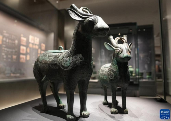這是陜西考古博物館展出的寶雞石鼓山商周墓地出土的犧尊(4月16日攝)。 新華社記者 李一博 攝