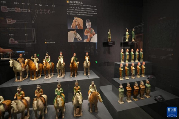 這是陜西考古博物館展出的唐三彩隨葬品(4月16日攝)。 新華社記者 李一博 攝