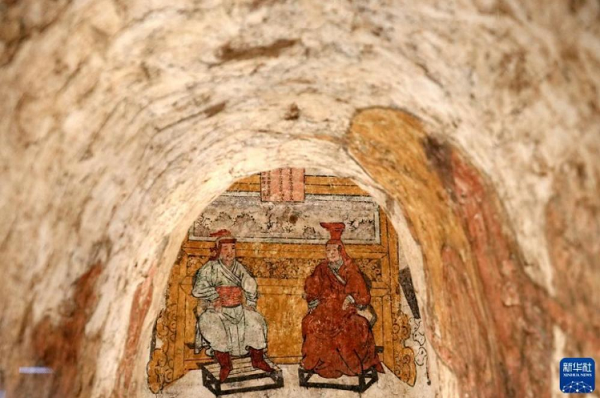 這是陜西考古博物館展出的蒲城縣洞耳村元代壁畫墓(4月16日攝)。 新華社記者 李一博 攝